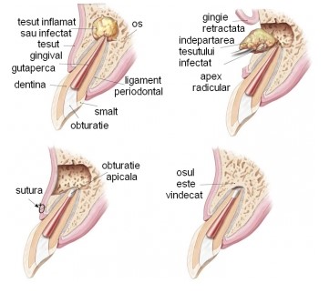 Este o metoda chirugicala ce consta în extirparea apexului dentar împreuna cu tesutul osos înconjurator infectat, fiind precedata sau nu de tratamentul endodontic corect si de obturatia perfecta a canalului.